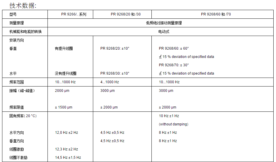 絕對振動傳感器PR9266和PR9268由一個地震塊和一個由彈簧片支持的測量線圈組成。測量元件可在一個圓形永久磁鐵的磁場中移動。