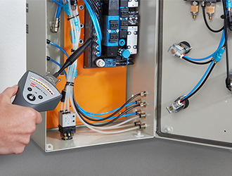 LEAK-DETECT 是一種用于機器和系統中的壓縮空氣網絡和氣動系統的檢漏儀。借助超聲波傳感器,該設備甚至能夠檢測到***小的壓縮空氣泄漏。Leak-Detect 安全可靠地檢測這些泄漏。測量結果被轉換成視覺顯示和聲音信號。