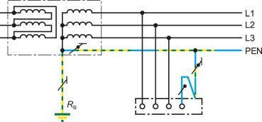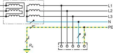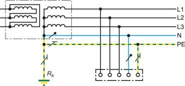 在TN系統(tǒng)中,一點(diǎn)直接接地并且電氣裝置的裸露導(dǎo)電部分通過(guò)保護(hù)接地線連接到這一點(diǎn)。
