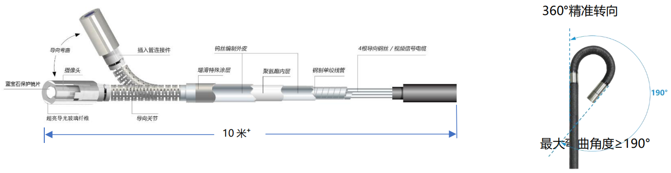 ***清內窺鏡采用模塊化設計,主機與手柄可一鍵分離。并且兼容 2.0mm/2.2mm/2.8mm/3.9mm/6mm 的管線系統,同時也兼容 3.9mm 側視管線、6mm 側視管線、6mm 直側視管線。產品幾乎滿足了各種檢測現場的需求。