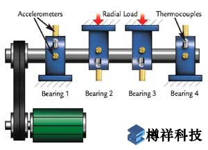 四個(gè)雙列軸承被上一個(gè)軸安裝為如圖1所示的***靈敏度的加速度計(jì)被安裝在每個(gè)軸承箱上。四個(gè)熱電偶連接到每個(gè)軸承的外圈,記錄軸承溫度監(jiān)視潤滑目的。與各種故障模式結(jié)束試驗(yàn)了多套進(jìn)行了。時(shí)域特征表明,大多數(shù)的軸承疲勞的時(shí)間期間的材料損傷累積期間被消耗掉,而裂紋擴(kuò)展和發(fā)展的時(shí)期較短。這意味著,如果使用傳統(tǒng)的基于閾值的狀態(tài)監(jiān)測方法,可用于維修人員的響應(yīng)時(shí)間災(zāi)難性故障之前,在這種軸承檢測到缺陷之后響應(yīng)很短。這可以檢測早期缺損的預(yù)后的方法是要求使有足夠的緩沖時(shí)間可用于維護(hù)和后勤安排。