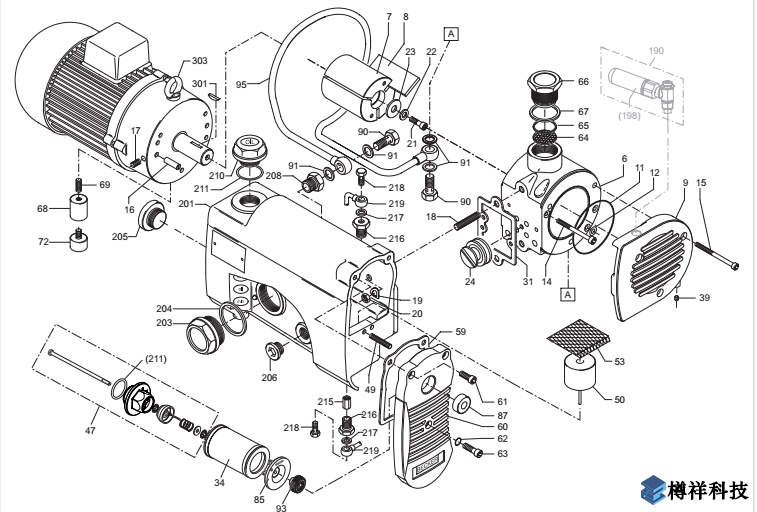筆者現(xiàn)場遇到一油式旋片真空泵出現(xiàn)啟動后跳電現(xiàn)象。在排除電機故障后,打開電機散熱風扇罩對泵進行手動盤車無法盤動。憑借經驗判斷故障來自于泵腔體和轉子內部。該泵工作環(huán)境中含有粘稠狀物質,很有可能轉子被粘稠物質粘住導致電機負荷增大,不能帶動泵工作便啟動過載保護。