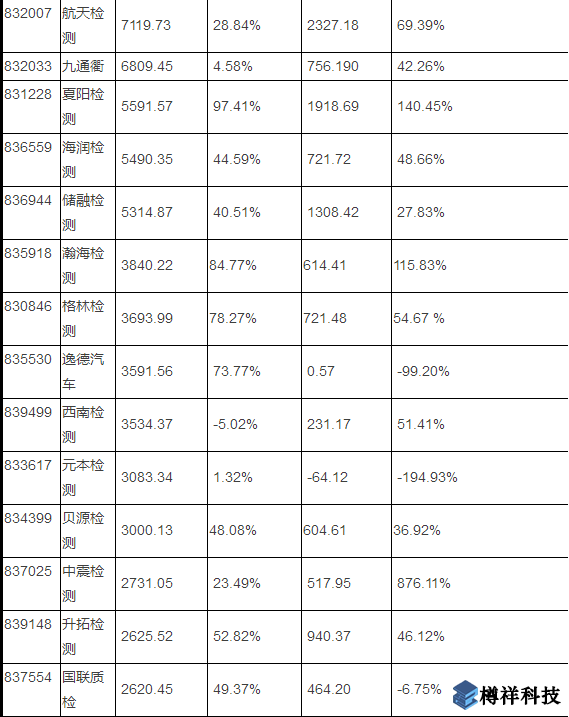 ***內上市檢測公司營業額、凈利潤一覽