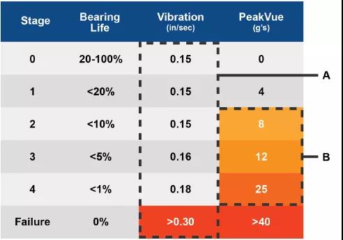 B. 采用PeakVue,振動測量數據在軸承將要發(fā)生故障前會有明顯變化