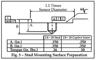 有四種主要方法用于將傳感器連接到預測性維護中的監控位置。它們采用螺柱安裝,粘合劑安裝,磁力安裝以及探針尖端或刺針的使用。每種方法都會影響加速度計的***頻響應。螺柱安裝提供***寬的頻率響應和***安全可靠的附件。圖5顯示了螺柱安裝傳感器的理想表面準備。